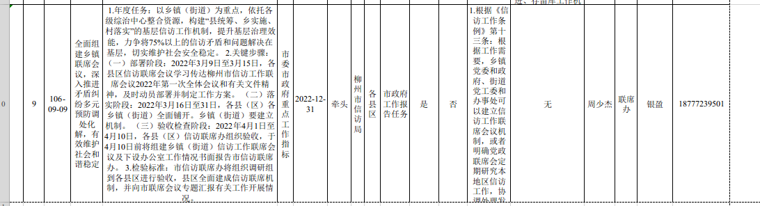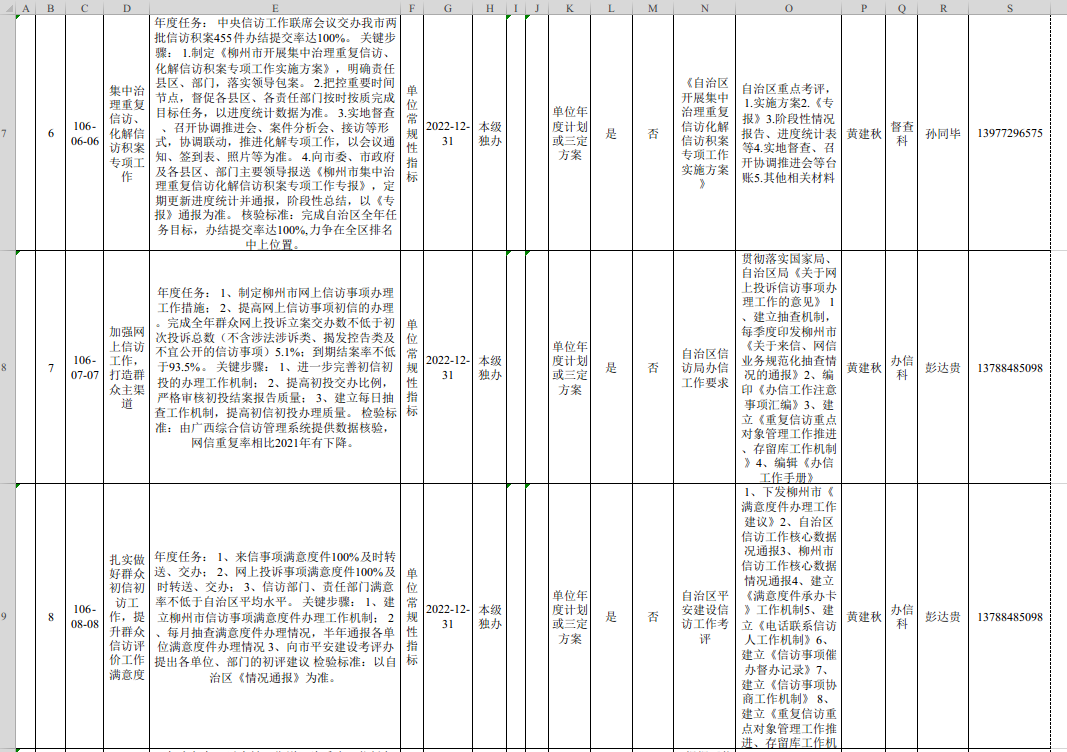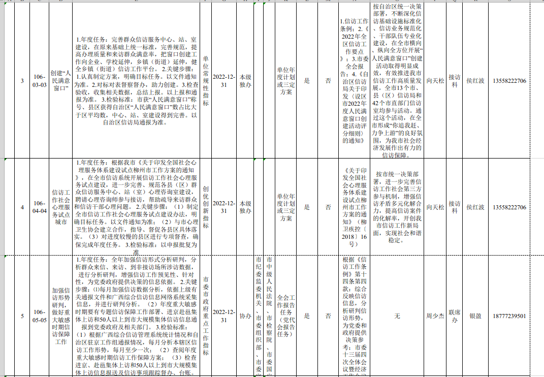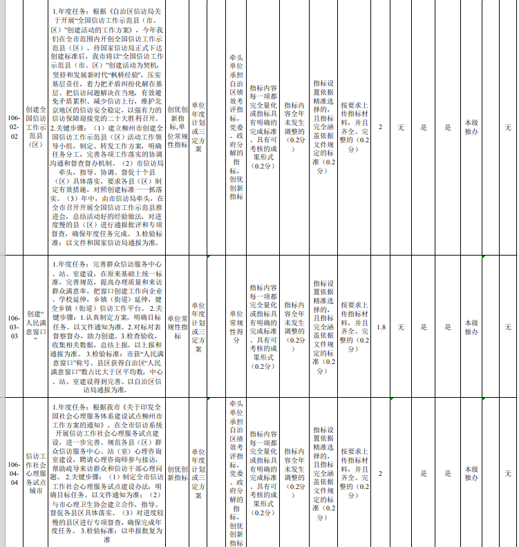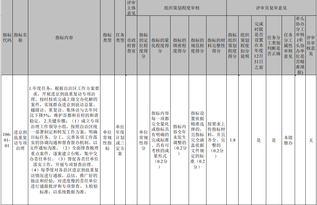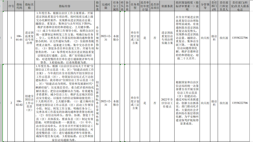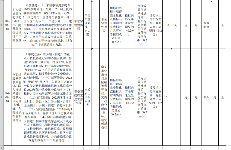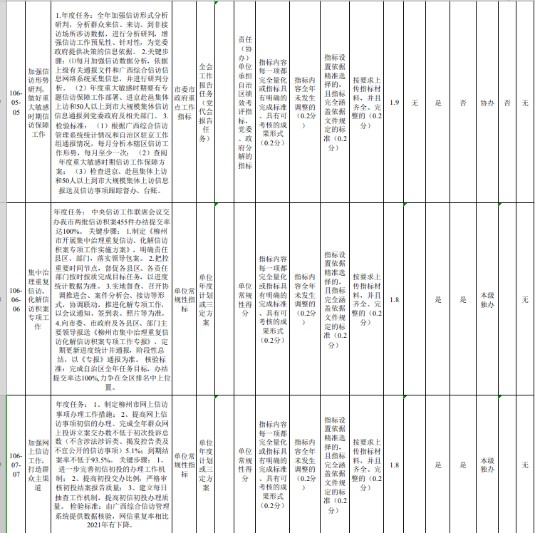 市信访局2022年度重点工作指标确认表